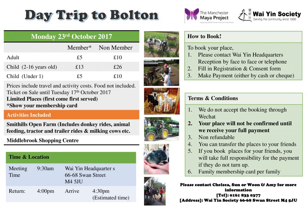 A few remaining places available for a family day trip to Bolton, on Monday 23rd October (during the school half term break).